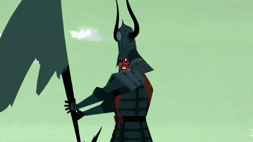 | Zoom out para revelar a James en ropa de samurái en el mundo del ninja mientras lentamente saca su espada | |
